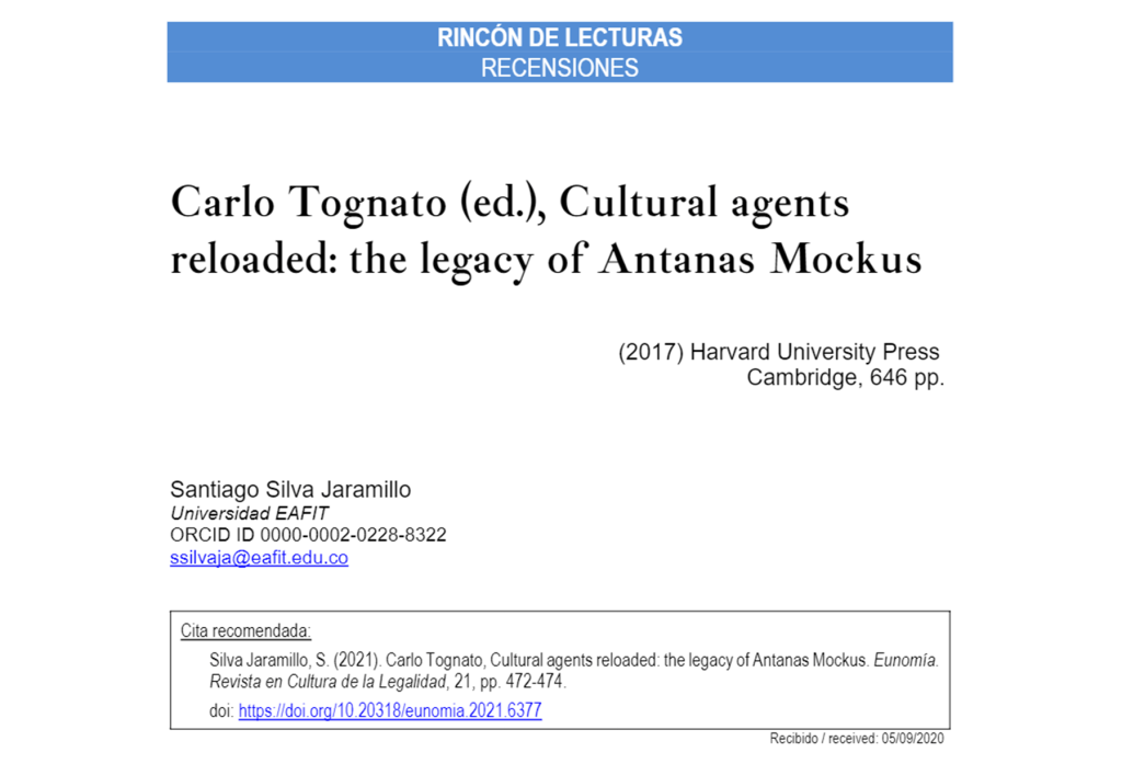 Carlo Tognato trabajó durante casi una década en la construcción de este libro. Reunir los capítulos, trabajar con los autores, adelantar las entrevistas e incluso resolver asuntos financieros y editoriales complejos que el mismo Tognato reconoce en el capítulo introductorio, supuso un esfuerzo sostenido por lograr el resultado final. Cultural Agents Reloaded: The legacy of Antanas Mockus es un compendio de reflexiones sobre la carrera académica y política de Antanas Mockus, un reconocimiento crítico a sus contribuciones a las agendas públicas de cambio social y a las reflexiones sociales sobre el abordaje cultural de los problemas públicos y dilemas colectivos en América Latina.
